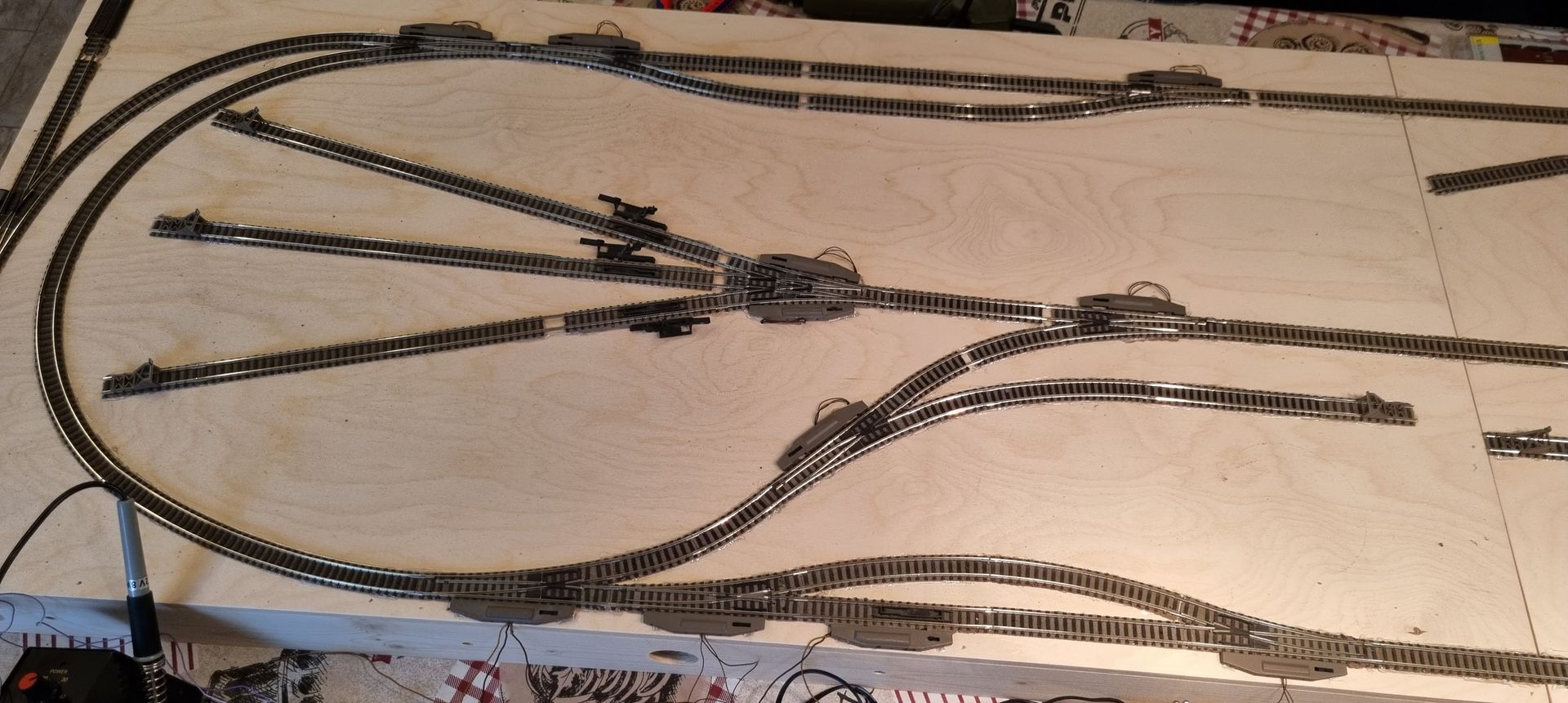 Wir haben alle Schienen und Weichen soweit gelegt, wie wir noch auf Lager hatten. Erstaunlicherweise sind wir recht weit gekommen.