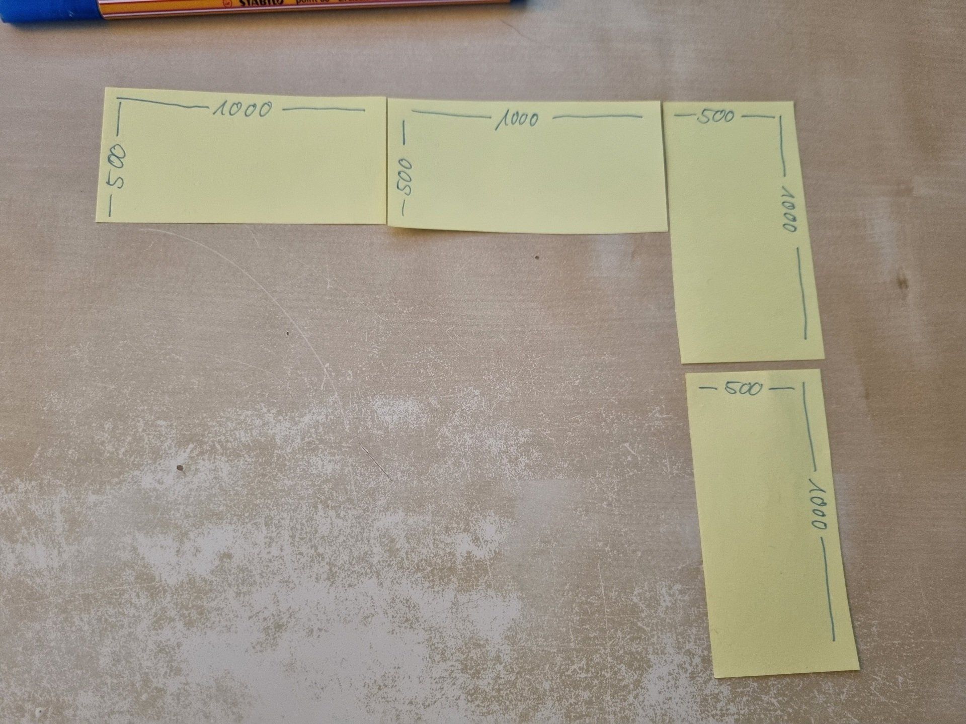 - Es werden 4 Grundmodule mit jeweils einer Fläche von 1000 x 500 mm festgelegt. Über die Anordnung wird unten berichtet.