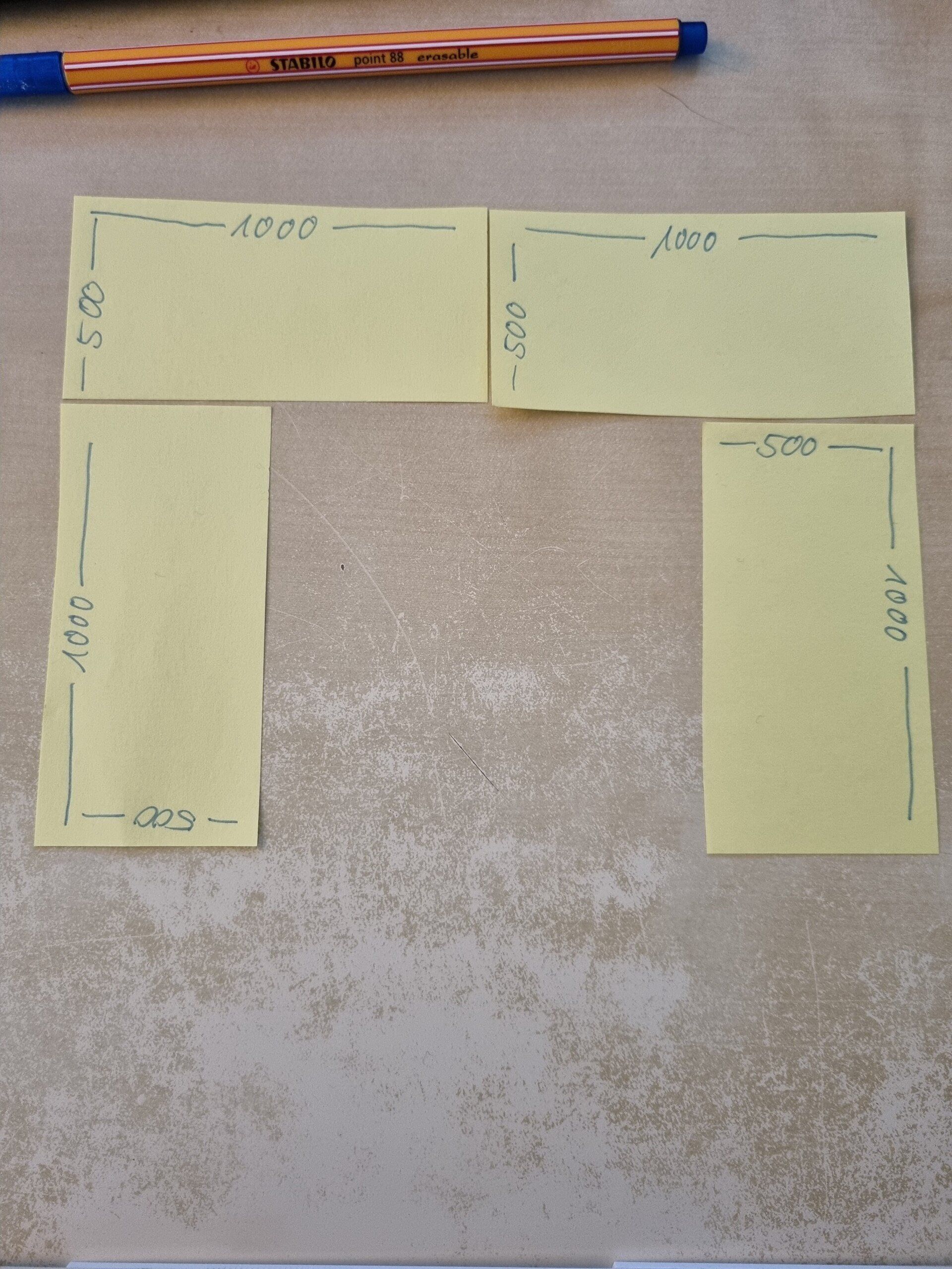 - Es werden 4 Grundmodule mit jeweils einer Fläche von 1000 x 500 mm festgelegt. Über die Anordnung wird unten berichtet.